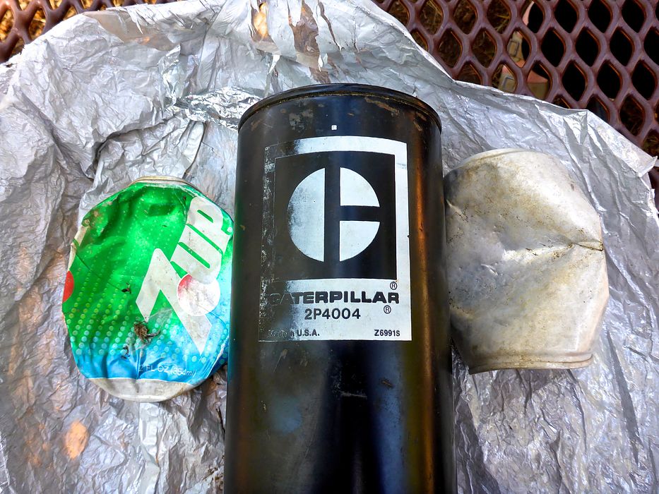 Things I *did* find: The 2P4004 oil filter was used in the Cat 3306 engine, which was used from the early 70s to late 90s in dozers, scrapers, front end loaders, etc. It was pretty heavy, so I waymarked it, then picked it up on my way back.