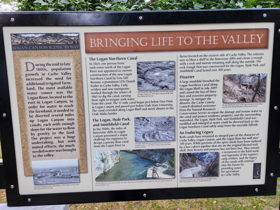 A very nice sign and very informative. If you want to read it easier, click original below. It pertains to the next few pictures while we are walking the Logan River Trail next to the Second Dam. The power station from 1923 is also here.