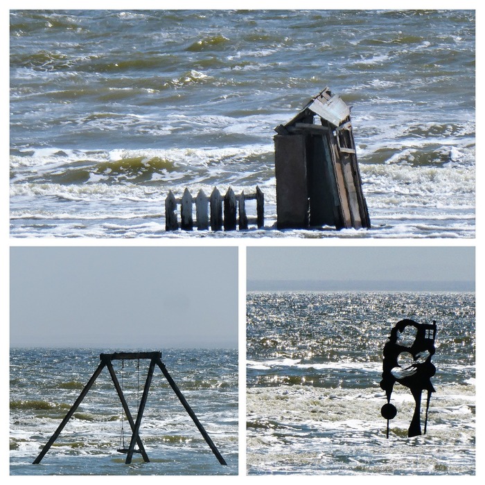 Created by Chris Wessman and Damon James Duke, this piece of art titled “The water isn’t that bad, it’s just salty” is a simple, innocent swing-set glittering in the sun. It’s in perfect triangular shape sitting atop the mesmerizing still waters. The calm and tranquil setting around this artwork has been used to symbolize the innocence of the Salton seawater.