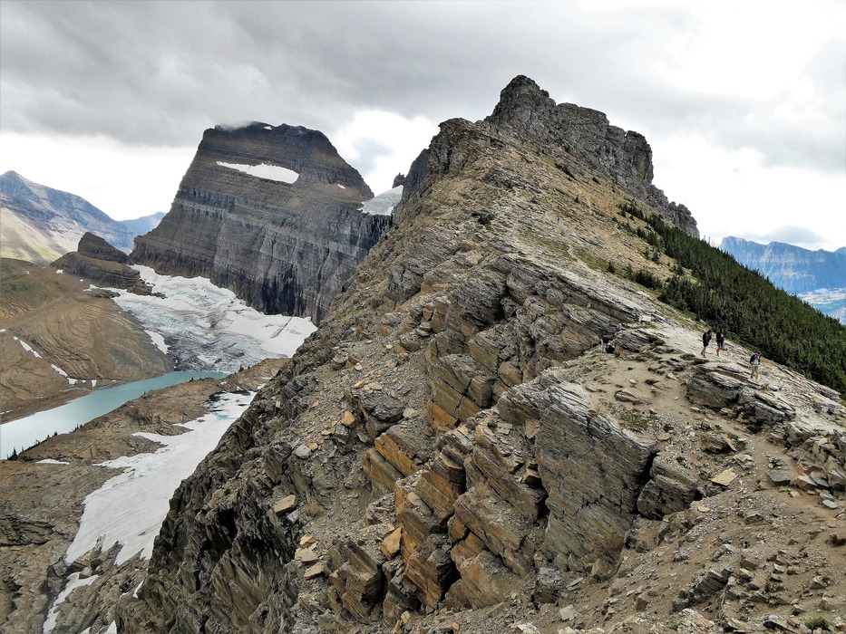 Wish it would have been nicer weather as you can hike up the side over there for even better views; especially of the lakes. Mount Gould is above Grinnell Glacier on left of photo and Gem Glacier is in center of photo with Salamander below.