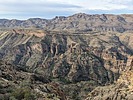 | no partners | | | Completed the triplet today also, but didn't drive between three peaks, just kept walking. I thought the bushwackiness was minimal, but almost the entire hiking area I strolled through appears to have been burned fairly recently and I didn't follow the official route from the beginning. Settled into a bunch of sheep trails on many of the miles covered. Two hours to Fish Creek Peak, another hour to Black Cross Butte and four hours total to Fish Creek Mountain. From that third summit, I wasn't quite sure dropping into Fish Creek was possible, but the steep and unique ridge descent worked out. I was only cliffed out a few times and had to bypass downclimb a few times. The section of Fish Creek that I did hike has been filled with gravel and sand since I'd hiked it last September. What a beautiful canyon! Awesome Arizona Sycamores, Cottonwoods, giant Saguaros, caves and boulders. I also chose the Lost Dutch exit to Tortilla instead of Fish Creek Canyon since I plan on hiking that another time soon. |