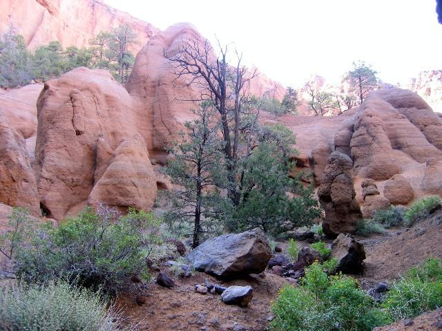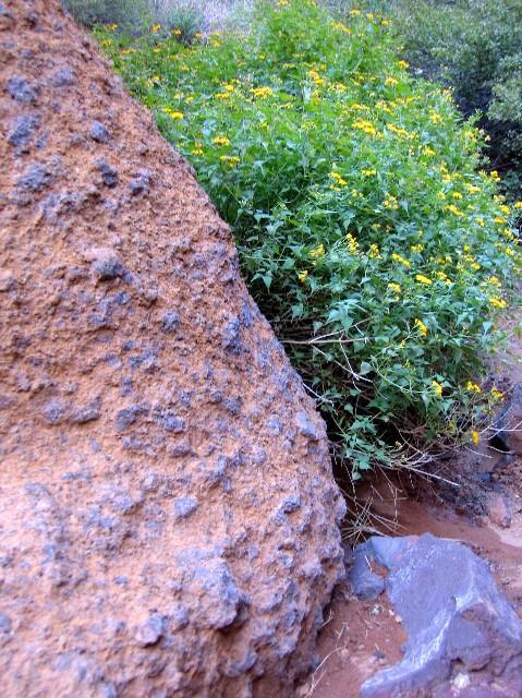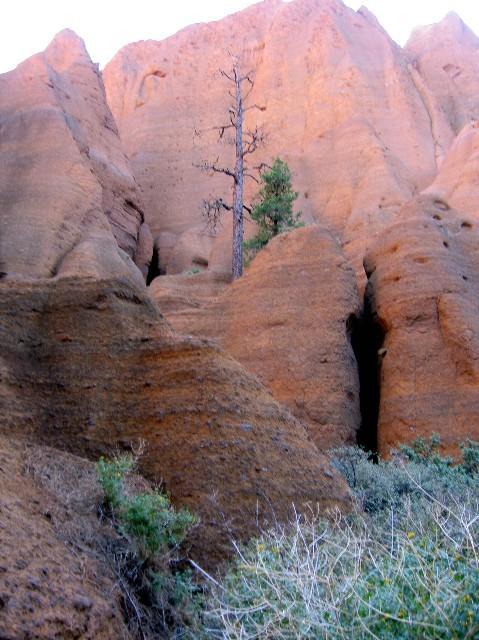 You come upon some black lava formations that act as a gate to the place. You will soon reach a 6 ft high silted-up check dam over which a ladder has been built to allow access to the inner area. The optional route is a scramble up the cinder shoulder to the right and between the "gates" and down the other side. If you are hiking with dogs, this is your route. Once you reach the top, you will have to navigate a short section of exposure and somewhat slippery footing to gain access to the area where you can descend to the inner areas. Once inside the trail heads a short way in and then you are off exploring among the spires, pillars, and pinnacles. The predominant color is earthy reds punctuated by mustard and black. This is the heart of a million-year-old volcano, and the volcanic tuff has been sculpted into various shapes. You can follow any number of avenues to explore the area. The area has re-vegetated, and you will find pondererosa pines growing out of the tuff. I chose to follow the stream bed back into the curving tuff formations following a trail of a variety of bushes and flowering plants supported by the stream. Interesting formations were at every bend, and the rocks were beautifully sculpted... Looking up at the horizon, you could see the spires extend all the way up to the ponderosa-clad ridgeline. Birds were nesting in hollows along the sheer wall -- marked by splotches of white bird droppings were their favored perches. Light plays hide and seek among the spires and hoodoos, and so can you. Be watchful as you scramble up these formations -- most are a lot easier going up than down! After a bit of exploring, we returned by way of the cinder hill exit and were quickly back to the trailhead. On the return trip you are treated to some expansive vistas of the Flagstaff mountains. Note: Water is not available along this trail. Gate Policy: If a gate is closed upon arrival, leave it closed after you go through. If it is open, leave it open. Leaving a closed gate open may put cattle in danger. Closing an open gate may cut them off from water. Please be respectful, leave gates as found. The exception is signage on the gate directing you otherwise. Check out the Official Route and Triplogs. Leave No Trace and +Add a Triplog after your hike to support this local community. | ||||||||||||||||||||||||||||||||||||||||||||||||||||||||||||||||||||||||||||||||||||||||||||||||||||||||||||||||||||||||||||||||||||||||||||||||||||||||||||||||||||||||||||||||||||||||||||||||||||||||||||||