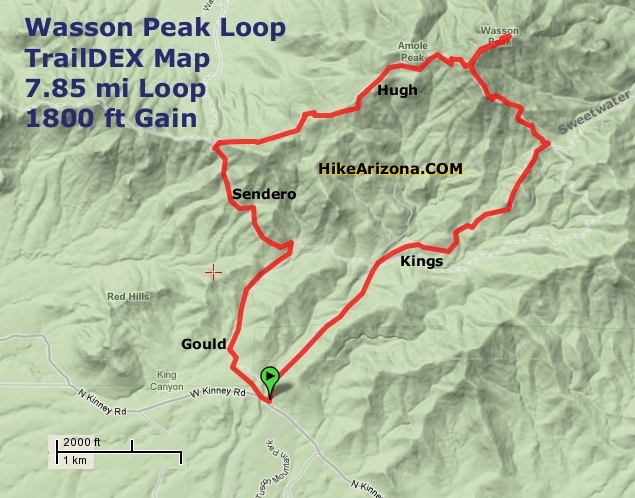 To King Canyon Trailhead From Speedway and Campbell in Tucson, take Speedway west to Gates Pass and continue to Kinney road. Follow Kinney road until the AZ-Sonora Desert Museum entrance is reached. The trailhead is located about 0.3-mi northwest of the museum. Parking is off on the right.