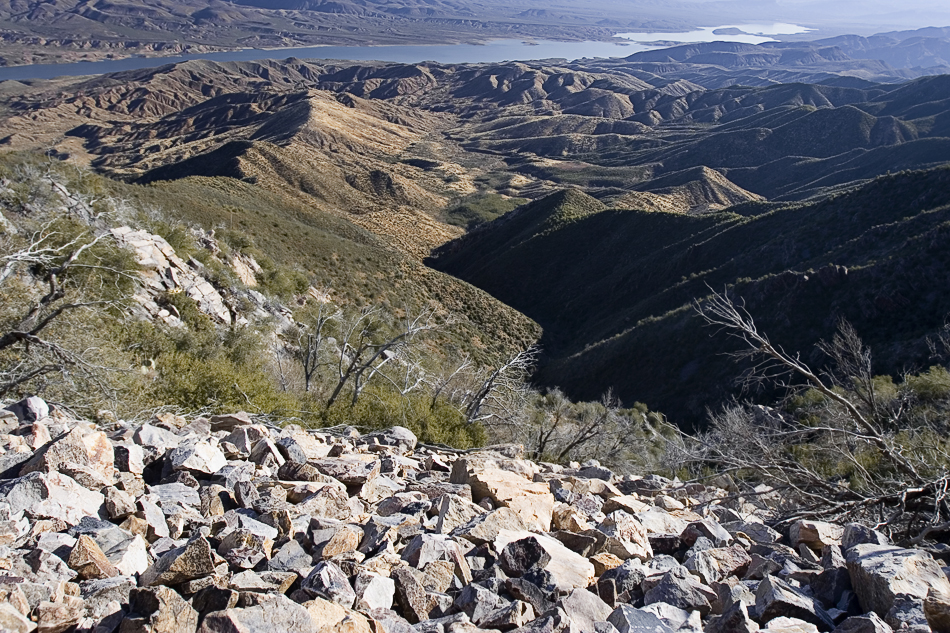 Saguaros to Snowballs by joebartels OverviewFrom the Oak Flat Trailhead (3650 ft) head 1.65mi to the northern section of the Four Peaks Trail #130 (5400 ft). Head south on #130 for 4.65mi to the Chillicut Trail #132 junction on the north-northwestern flank of Buckhorn Mountain. From the 130/132 junction (5725ft) head down 5.4mi to Rock Creek Trailhead (2850 ft). Setup We did this hike as a shuttle hiking counterclockwise. You could hike the 3mi of road. Keep in mind that adds 800ft elevation gain. A clockwise attempt would be a more difficult task, physically and mentally.