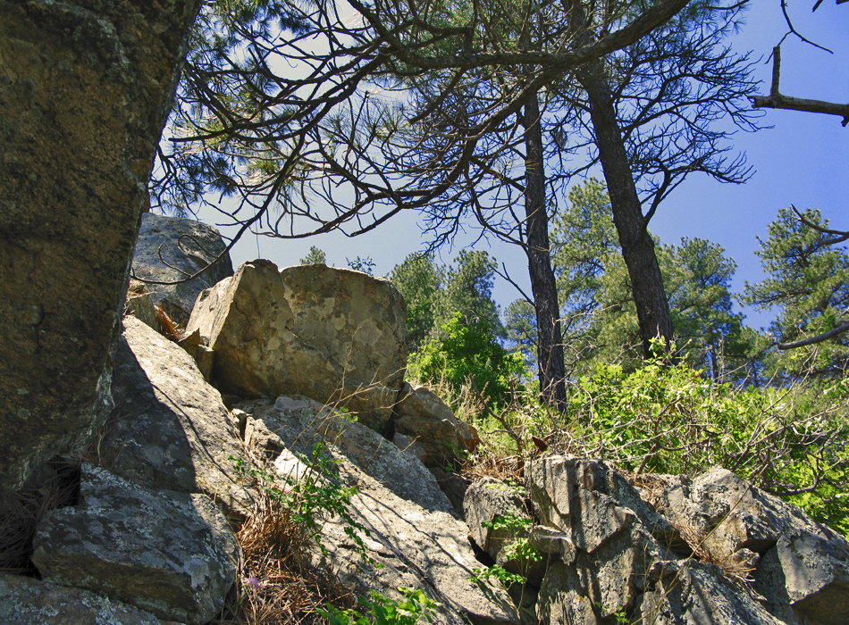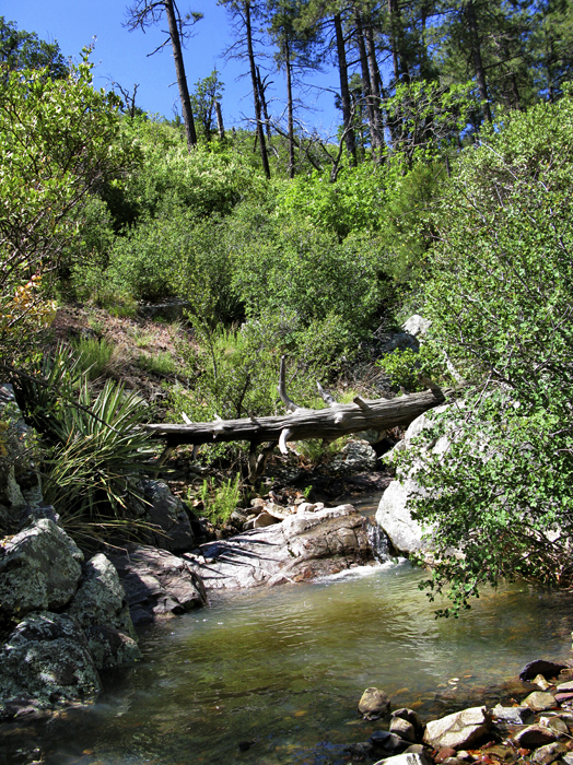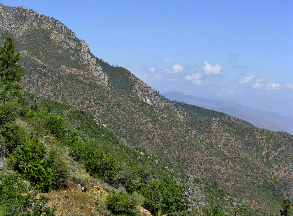 The hike up is posted in detail at Oak Flat Trail #130. At the 123/130 junction, you have just entered the wilderness and a small stand of tall ponderosa pines. Continuing on the push up continues for another 0.6mi and 400ft to a saddle. The remaining 4 miles are constant ups and downs, transversing the drainages. Luckily they're all in the 50-100 foot range and go almost unnoticed. You head down from the small saddle, up around, and down another drainage to the Alder Trail #81 junction (3.15mi / 1.5mi on #130). On route, you cross a firm slope of rock fall out of the vegetation then back into a wooded ravine. On this trip the creek was flowing with a nice small pool at the junction. Stay left at the junction. The vegetation thins out over the next quarter mile. The next mile of the trail hugs the mountain in and out of drainages without vegetation, crossing another stable rockfall or two on route. When things start to get dull, you enter a nice forest with some healthy stands of ponderosa. Some of the boulders on the slopes provide a nice spot to take a break and take in the view! The next mile of the trail is the sweet spot where life seems good. I believe this portion was constructed in the past ten years, specifically for the AZT (Arizona Trail). A half mile before the Chillicut Trail #132 junction, the vegetation picks up, and then it goes nuts. We had to wade almost a half-mile through 7-10 foot bushes that I can only describe as similar to oleanders (perhaps Seep Willows) with tons of white blooms. Due to the recent rains, they weren't dusty. For the most part, they grow straight up, making it easy to wade through. They did get tangled up in sections simply due to the dense factor. I found walking backward the best option for breaking the tangles. The trail was barely visible if you knelt to the lower foot and half. The hike down is posted in detail at Chillicut Trail #132, although you'll be going the opposite direction. Summary Oak Flat / Chillicut Shuttle is a great hike. We lucked out on the timing with a freak cold front in May. Due to the steep terrain and changing biomes, it isn't easy to schedule this hike weather-wise. March is probably the ideal target. Midway into this hike, I threw a snowball at Stiller in the upper reaches. Hours later, I was sweating profusely on the oven roller coaster below admiring Saguaros. Check out the Official Route and Triplogs. Note This is a moderately difficult hike. Leave No Trace and +Add a Triplog after your hike to support this local community. | |||||||||||||||||||||||||||||||||||||||||||||||||||||||||||||||||||||||||||||||||||||||||||||||||||||||||||||||||||||||||||||