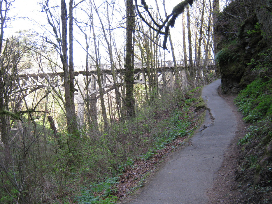 The return path on the West side of the creek has a few forks in the road, but they meet back in the same place. The right fork leads to the cliff right above the lower falls someone keeps pulling back the safety cables, and one slip and you're a goner, so I cannot recommend going down there. The trail turns West through more forested area, and at one switchback there is a very odd tree. The trail descends to the highway, but you can cross the road and walk down to a picnic area and turn right on a paved path that takes you under the highway bridge to the base of the lower falls. There are bathrooms to the North of the parking lot, and surprisingly, they are real toilets, not just a hole in the ground. These photos were taken in March, during the high amount of snow runoff. I've been told that during the late Summer months that the creek flows are so low that the falls become a trickle, but they are still worth a stop along the highway. Check out the Official Route and Triplogs. Leave No Trace and +Add a Triplog after your hike to support this local community. | ||||||||||||||||||||||||||||||||||||||||||||||||||||||||||||||||||||||||||||||||