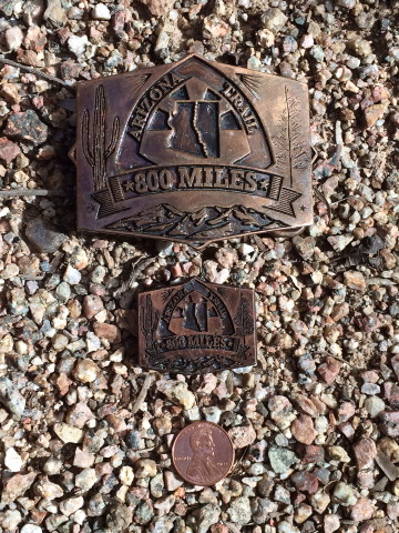 The Arizona Trail Association is now offering a Completion Award to anyone who has completed the trail by hiking, biking, running or riding a horse! Choose from a copper belt buckle or a pin/pendant in four different finishes (picture below).