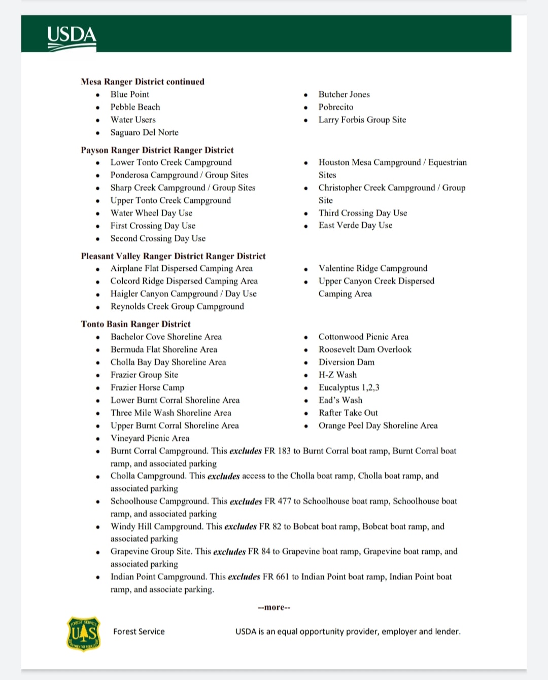 Prescott NF has closed a significant chunk of their recreation sites as well.