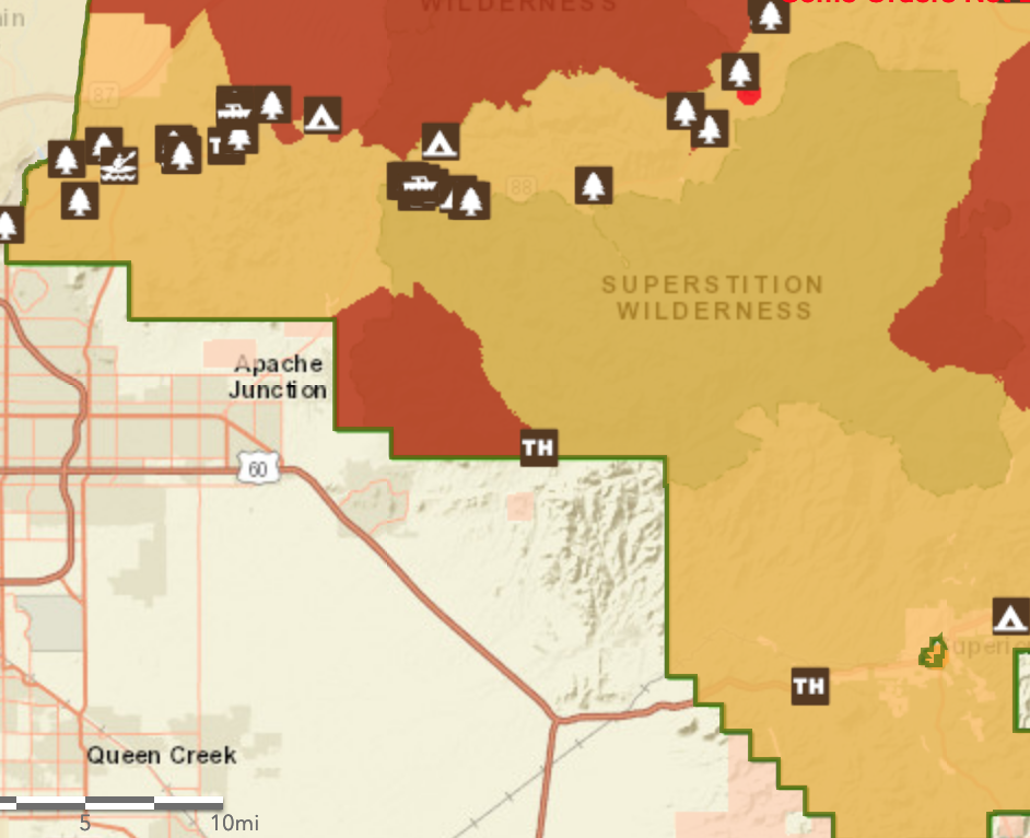 MAP of Superstition Fire closure area: