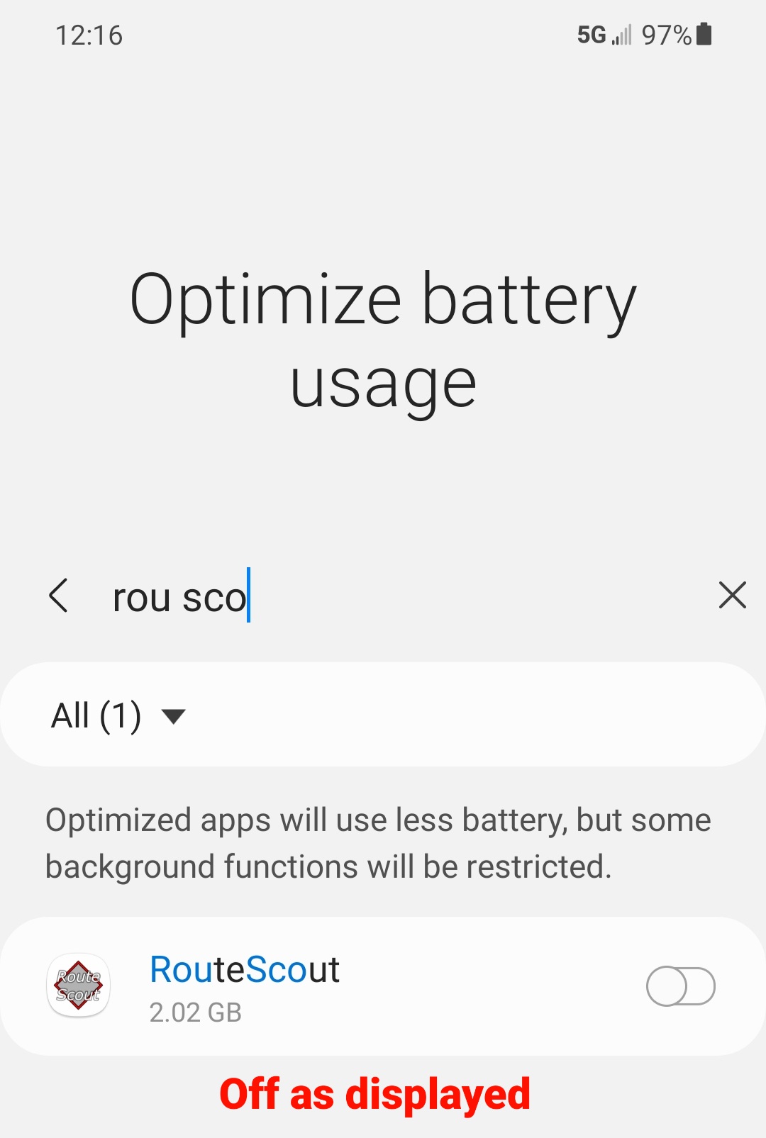 thanks. The "allow all the time" setting was already on, but the battery was being optimized for Route Scout, so I disabled battery optimization.