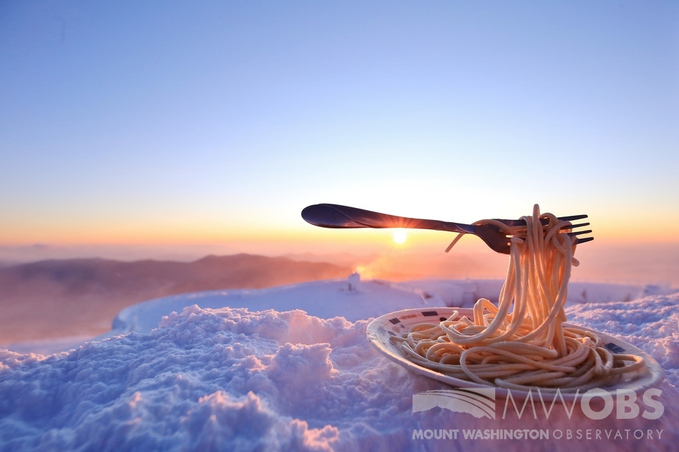 Fun with pasta. I guess the plate froze to the table before it had a chance to blow away.