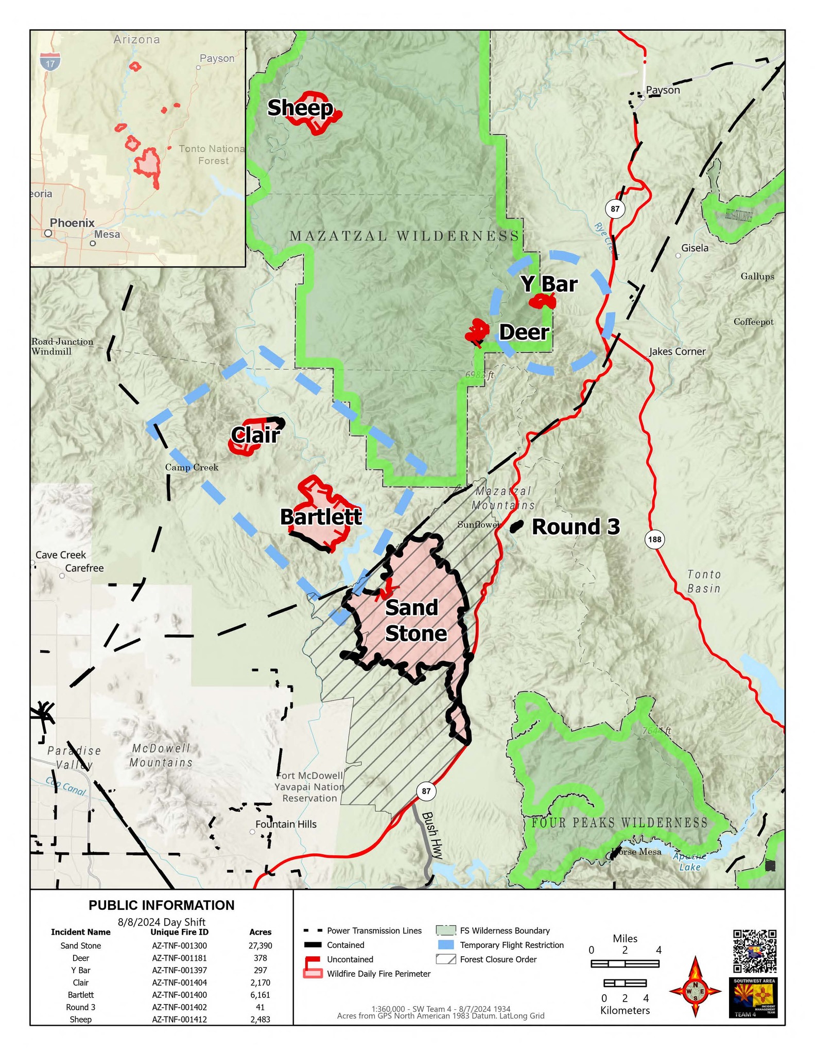 Y Bar is burning near Shake Tree Canyon, Deer Fire is burning north of Mazatzal Peak near Deer Creek on the AZT, Sheep Fire burning north of there near Goat Camp Canyon. Davenport Fire was burning just northwest of the Deer Fire, but has since but put out. All are smaller in size, just a ton of lightning strikes in the area past couple of weeks.