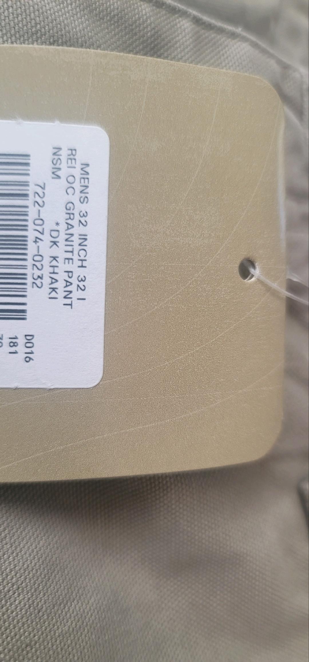 Men's REI pants - Both 32x32 1 pair is called 'Slickrock' and the other is called 'Granite'. The Granite is a thicker material (think Sups) - they are a medium Taupe color and the Slickrock is lighter weight but still durable - I would call them tan, REI says 'Sesame'.