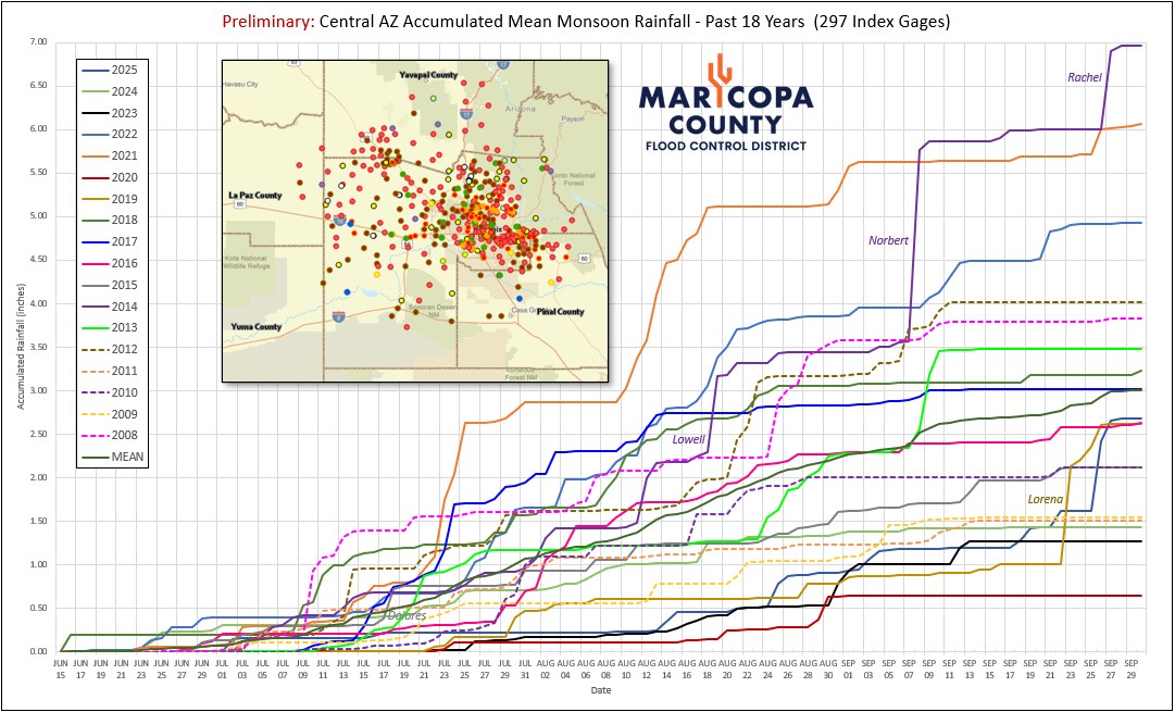 Here's a handful of images that illustrate the data from the 2025 monsoon from across the entire flood control district.