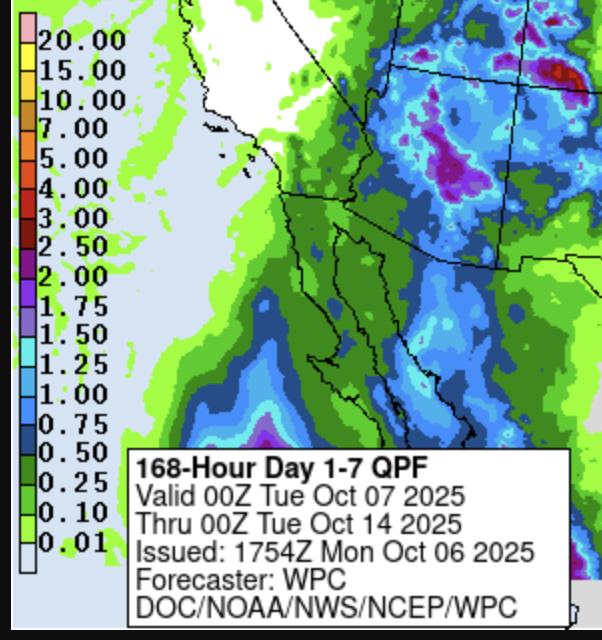 @RedRoxx44 One of the major models is calling for insane rainfall amounts in the 5-10 inch range for the southeast quadrant of the state, based primarily on the moisture from the tropical system that is following behind Priscilla and should hit late in the weekend or early next week. Seems tough to believe that will end up being the reality, but it's something to keep an eye on. Is kayaking on I-19 done in kilometers?