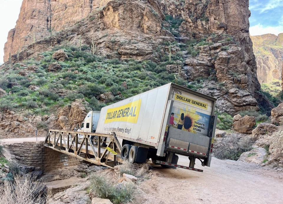 I saw this yesterday and was so befuddled I just assumed it was some idiotic AI video. But sure enough, SR88 is closed due to a semi truck getting stuck on the Fish Creek bridge. The most recent ADOT posting simply states that there is no estimated time for reopening.