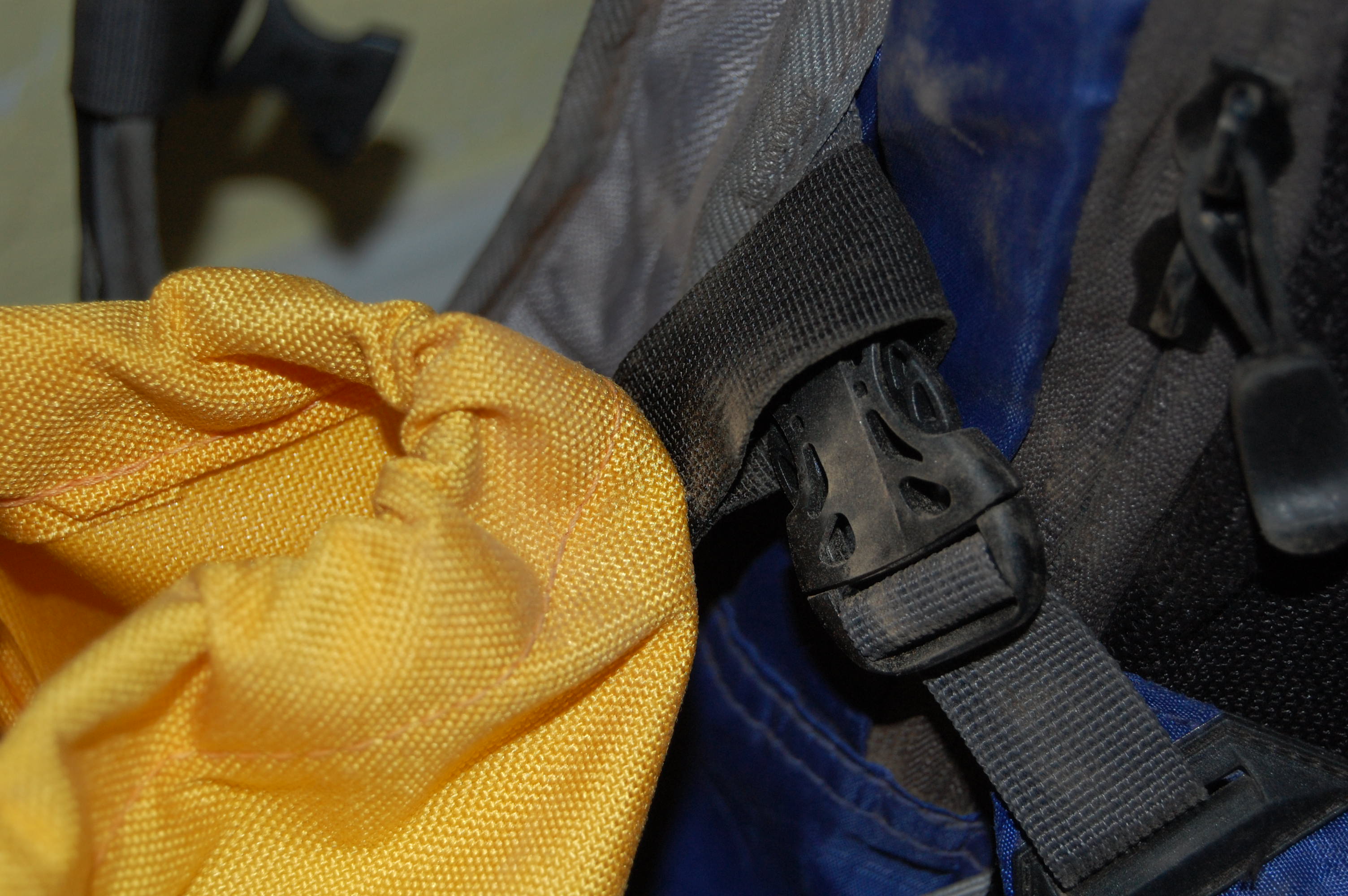 I have a pretty compact 3L pack which has just enough room for a second 2L bladder in another pocket. This leaves just enough room for a few snacks, first aid, extra batteries, etc, in two other small pockets, but no room for my dSLR! Usually it's not a problem, as I can just strap the camera to my front, but when I want to take it on hikes that involve a bit of climbing it becomes an issue. I tried hooking my camera to my pack in an assortment of ways that involved caribiners and straps, but the weight was always pulling me off-center or the camera would jump forward if I leaned over or lunged.. not good! So I took my pack and camera to the Hiking Shack and they solved my problem! Solution: strap and tie a durable bag with a drawstring to the back of my pack. The weight is perfectly distributed and doesn't shift, I've got lots of elbow room/extra room for when I'm negotiating rock walls, the camera doesn't swing or flip forward anymore, and it's easy to access! I can now take my beloved camera out on those tougher hikes without worrying. :y: Yay for Hiking Shack and their helpful creativity!