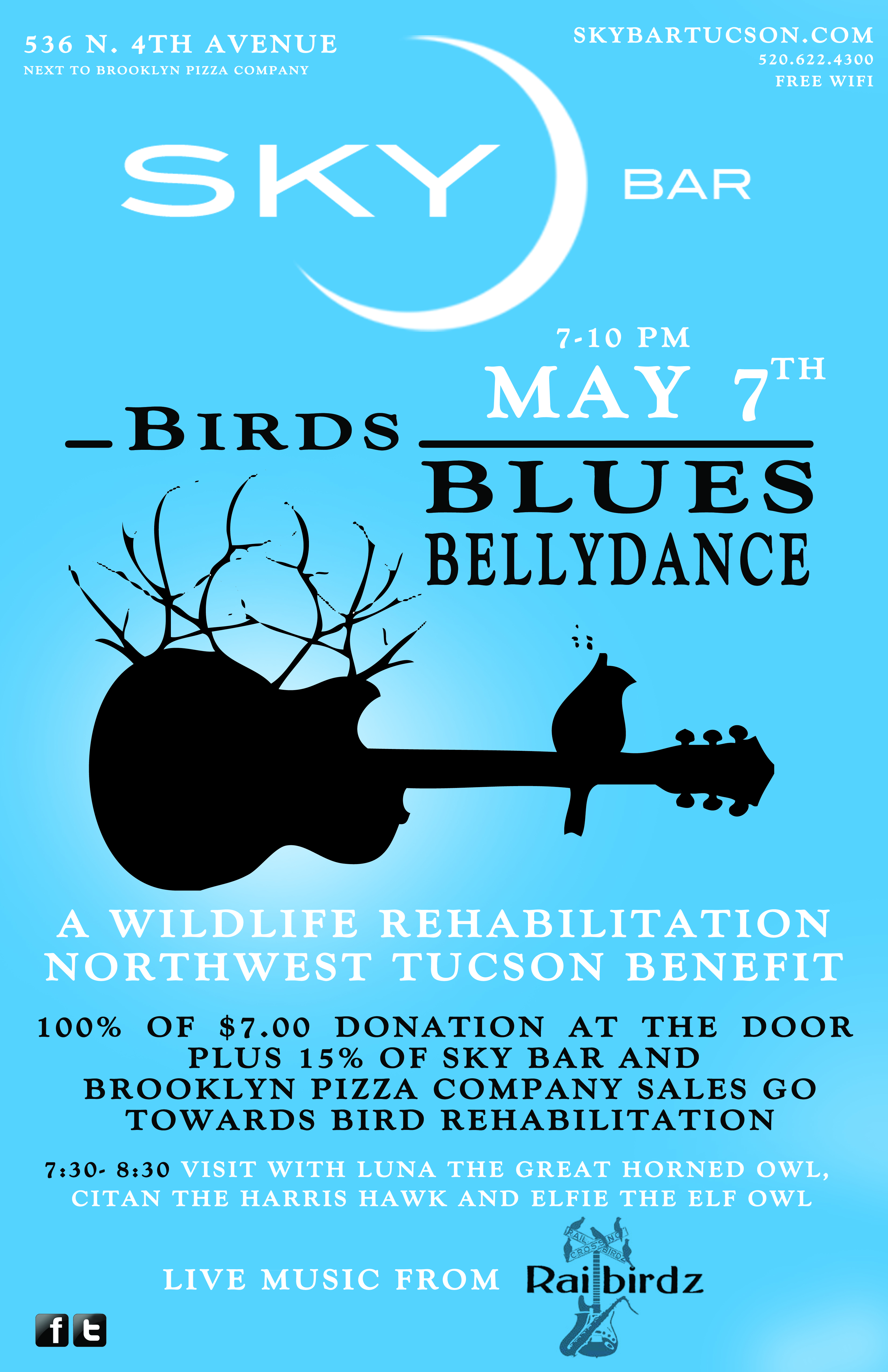 Only a week away! Come on out and enjoy Birds, Blues, and Bellydance- and help out Wildlife Rehabilitation Northwest Tucson by eating pizza and drinking beer- what's not to like?