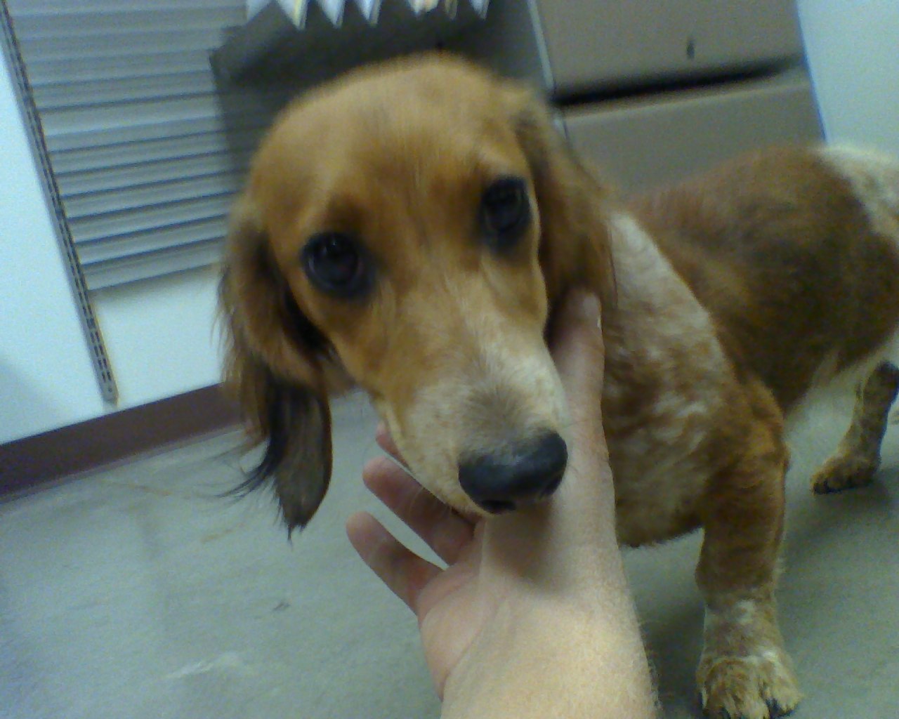 She is currently at the West side County Shelter and I would love to see her go to a good home. Like I said, I don't usually do this, but she is a rare case and I am dying to see that she finds a Good Home! Red/Red Merle, 1 year old, Female, Long Hair Mini Dachshund with an incredibly sweet disposition.