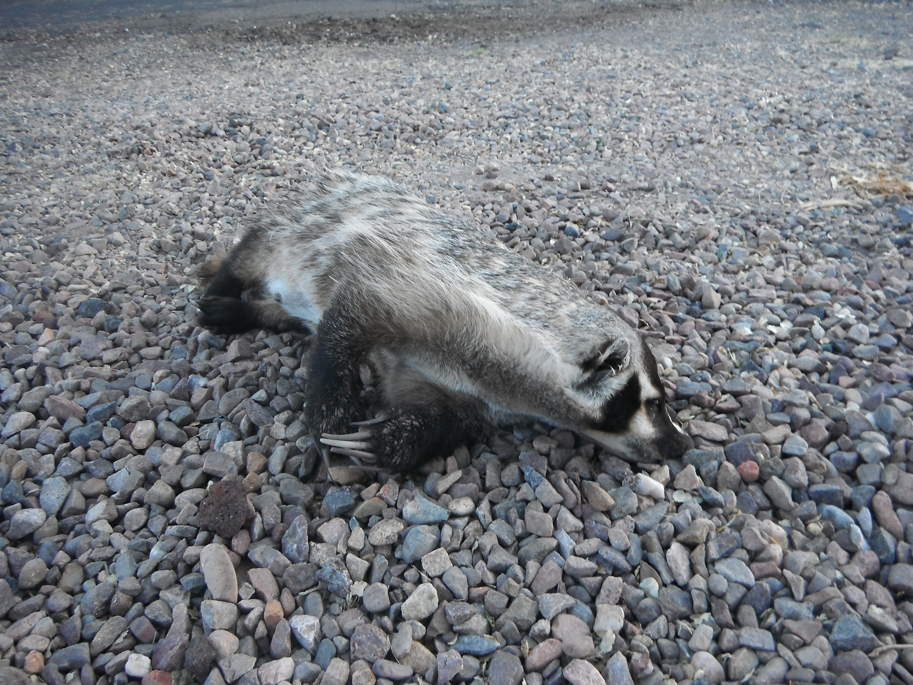 I was astonished this morning to see a badger on my street! Unfortunately it is dead, having been hit by a car. I knew there were badgers in the White Mountains, but I have never seen one before.