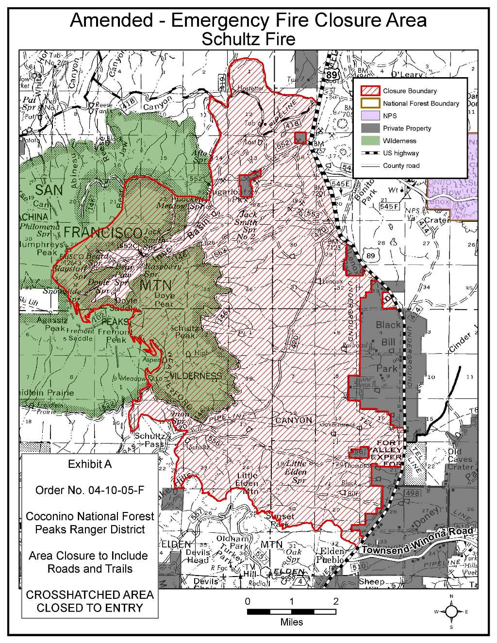 Fire closures are implemented as standard fire operations procedure for public safety and firefighter safety. This modified closure to public access is in force until September 15, 2010 or later if necessary. The Closure Order and map is at http://www.fs.fed.us/r3/coconino/nepa/f ... 0-06-f.pdf.