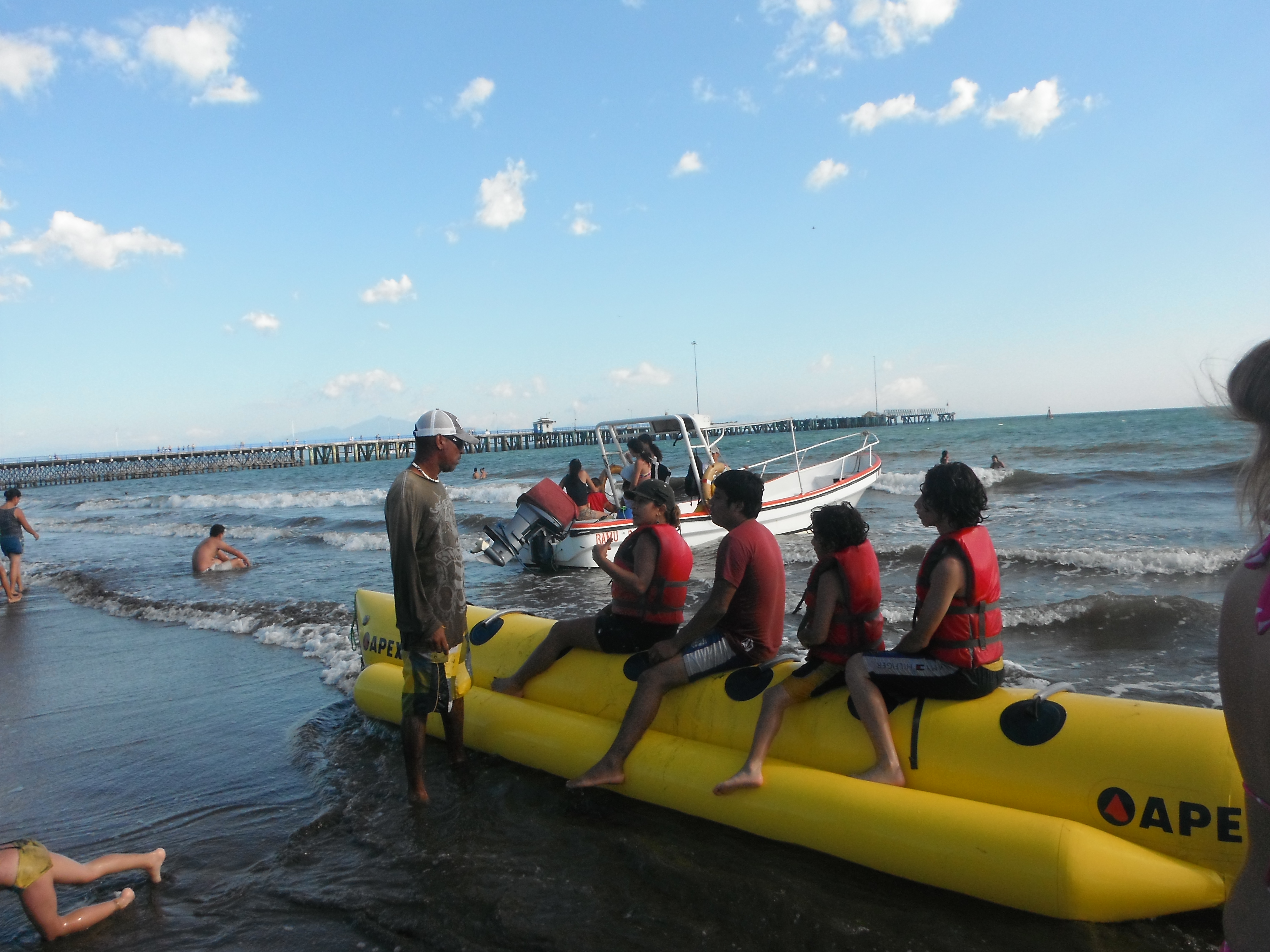 Yesterday we rode on this contraption that everyone calls "the banana," which is a long narrow yellow inflatable raft pulled by a motorboat. The guy driving the motorboat purposely makes sharp turns, dumping everyone into the sea! He did this about 4 times! I thought it was a bit rough (despite my affinity for river rafting) and I was extremely glad I was not wearing my glasses or carrying my camera, since they would have been long gone the first time we rolled over! Then he had to help some of us get back on the thing!