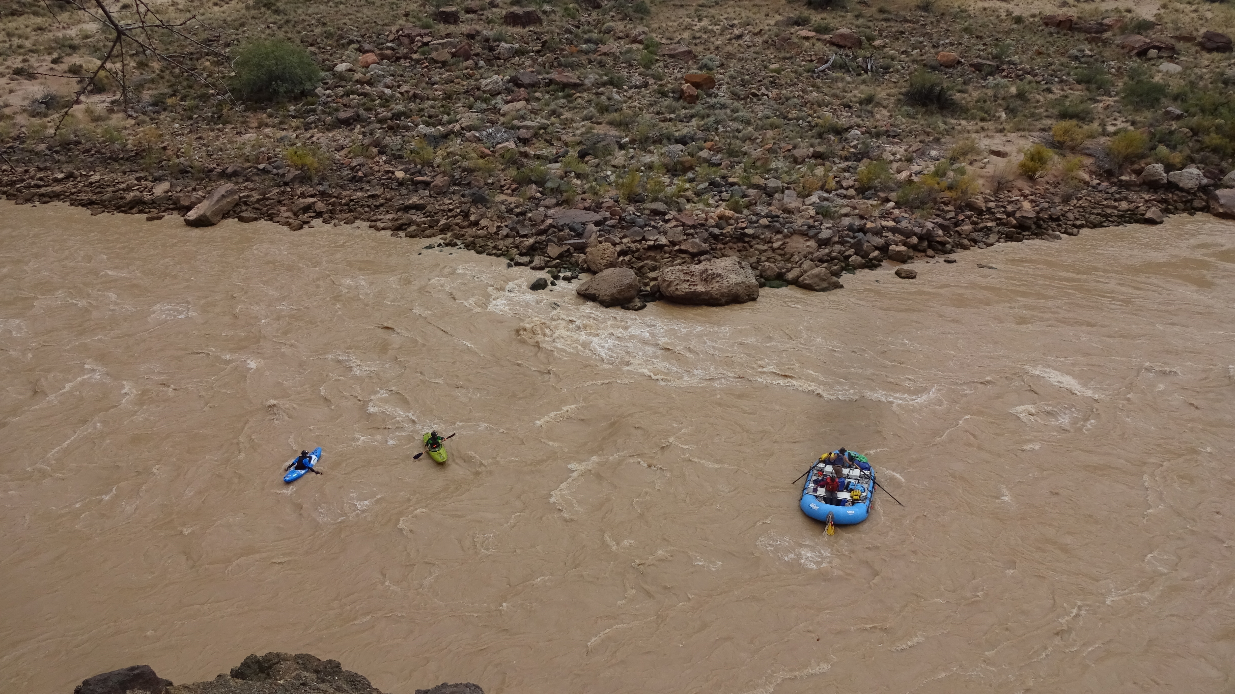 Yes, that's my group! Thanks for the photos! Video would be nice to see, too. I'm not in those photos. I was on another one of the blue rafts. I wear one of those ridiculous hats with the big flap over the back of my neck, a very light beige, same as profile photo. I ended up with a great group! I was the permit holder. No boaters I knew could get away for 25 days, so I went to the social media to find qualified boaters. I had not met any of them before. We had a lot of skill and experience to work with, plus one newbie from Hawaii, who flipped once in Mile 29, but finally caught on and by the time we reached Hermit he was going for it. A very athletic 63 years old, his first time rowing any kind of boat. Our 4 kayakers--three guys and a gal--were all expert creekers from Colorado, and super helpful on the trip. We carry all their food and gear, and expect extra work in return. As rafters, we call them "cling-ons," "leeches," and "dirtbag kayakers," etc., but in this case, only in jest. They were young and strong and very helpful in camp, setting up groovers and the kitchen. Ran safety for us on the river.