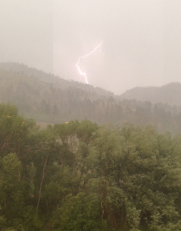 Nice storm blew through the pass. Nice lightning display and a little snow deposited on the peak across the pass.
