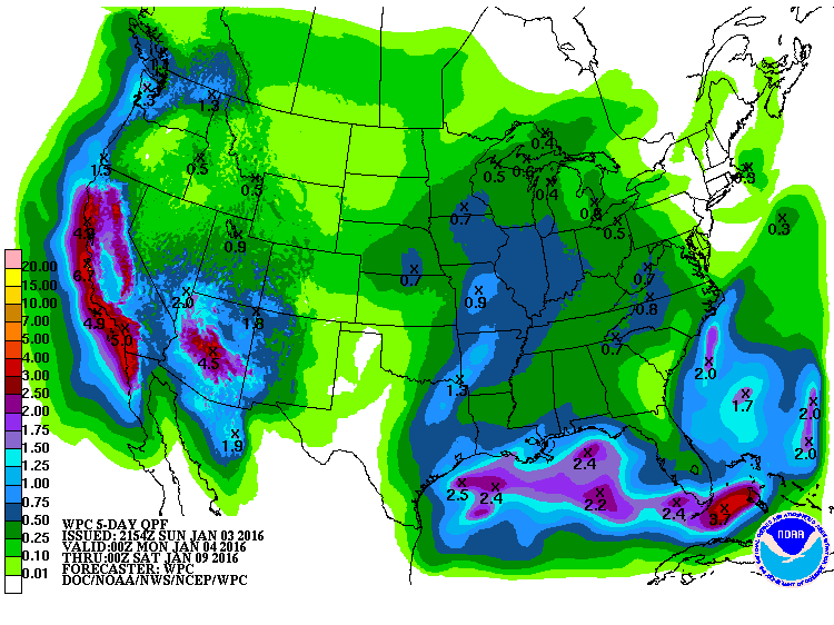 The Phoenix NWS is talking about impressive central AZ rain totals, and the national QPF map has some substantial totals for the next 5 days. It reminds me a little of the January 2010 storm series from the middle to late part of that month, as that was the last time I remember living in Arizona and having a series of storms track over us and drop large totals.