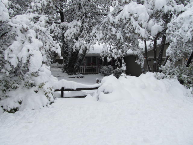 My daughter just returned home to the cabin where she lives in Mountainaire (just south of Flagstaff) after having been away for 10 days, and found three feet of snow all over everything!