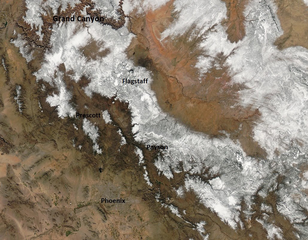 Flagstaff NWS calls 2015 warmer and wetter, with some locations in their top 10 warmest and wettest. Well above normal yearly precip for Flagstaff, but below normal snow. There was a snow ball in congress, so clearly that disproves everything. Either way, there was a week El Nino last winter before this much stronger one developed, so that probably had an impact. So far, the southern Sierra snowpack remains below average, but not that far below.