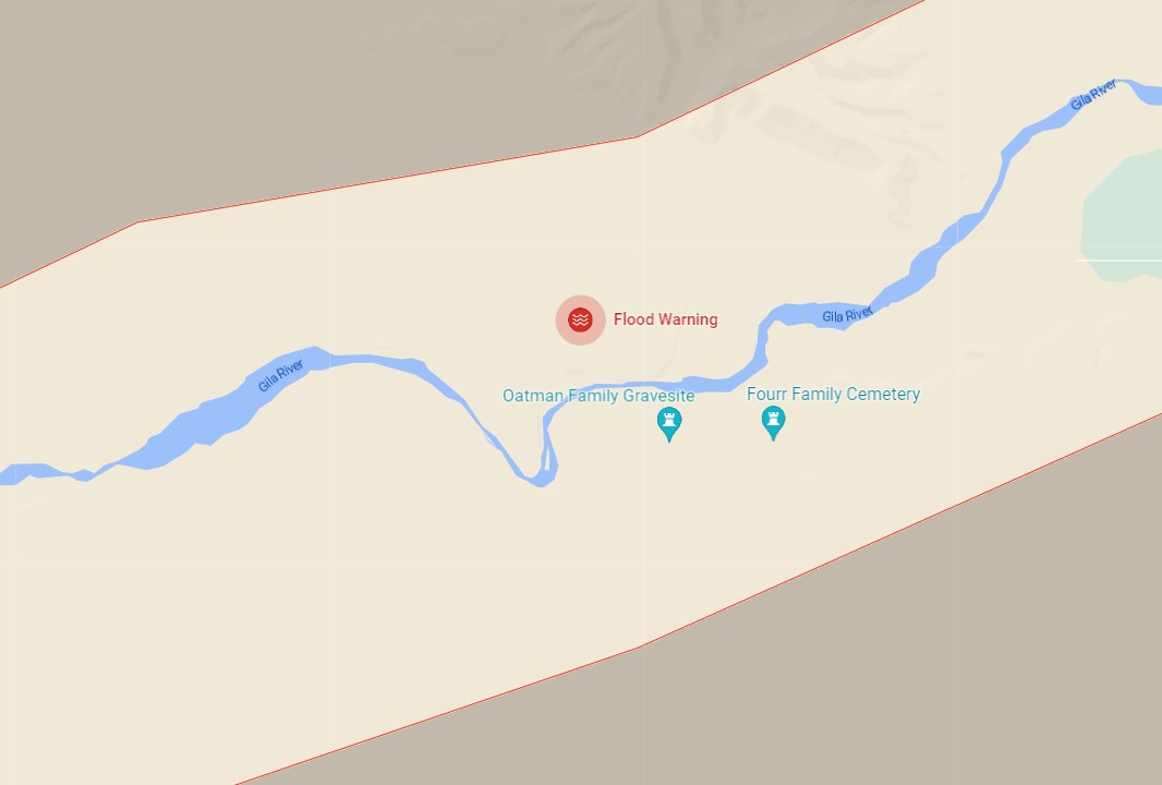 There's a 600cfs dam outflow today, so that might warrant an alert if there are any urban campers nearby, but the topography of that area doesn't seem to me to warrant a flood warning, except to alert farmers of a change from bone dry to somewhat muddy.
