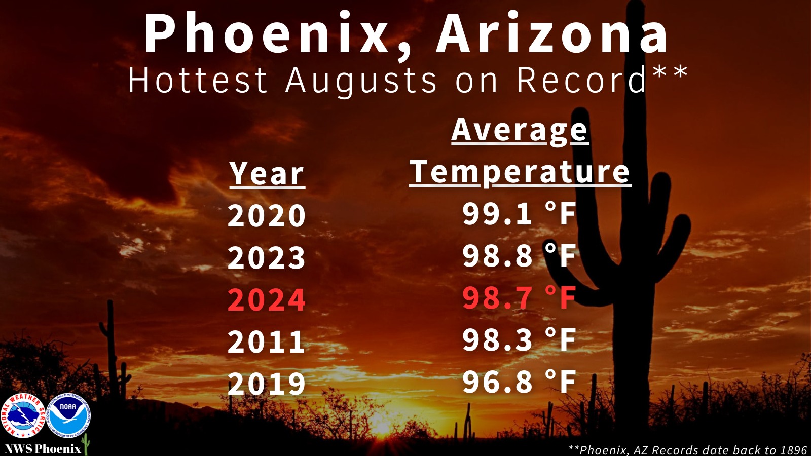 Phx had a delightfully cool August compared to last year.