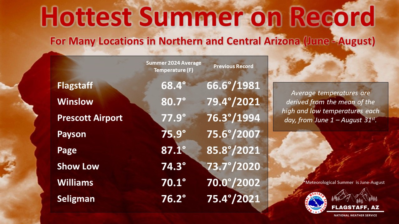 Flagstaff reported record warm summer temps for a number of locations across their forecast area.