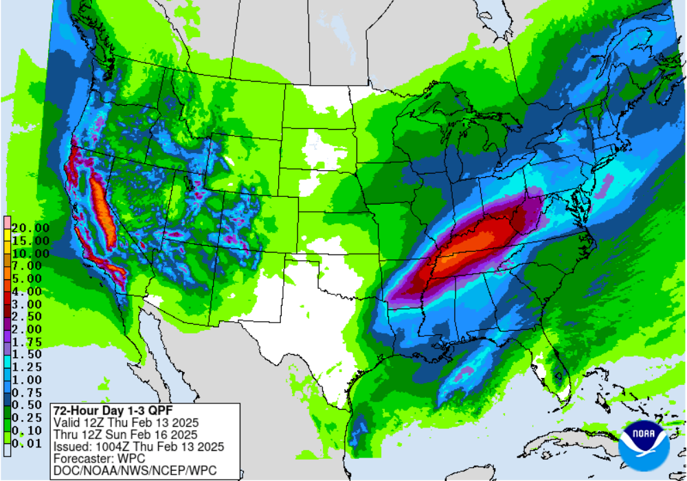 72 hour QPF, since the storm is supposed to be between now and Saturday. Dry SE AZ with almost nothing, wet in Mohave and northern Coconino Counties. Not much for the desert, but at least some areas that have been lacking may get some precipitation. Track is just a little too far north, but that is good for Utah, Colorado, Nevada, and southern California enjoys some atmospheric river, as it is now fashionable to refer to the moisture plume.