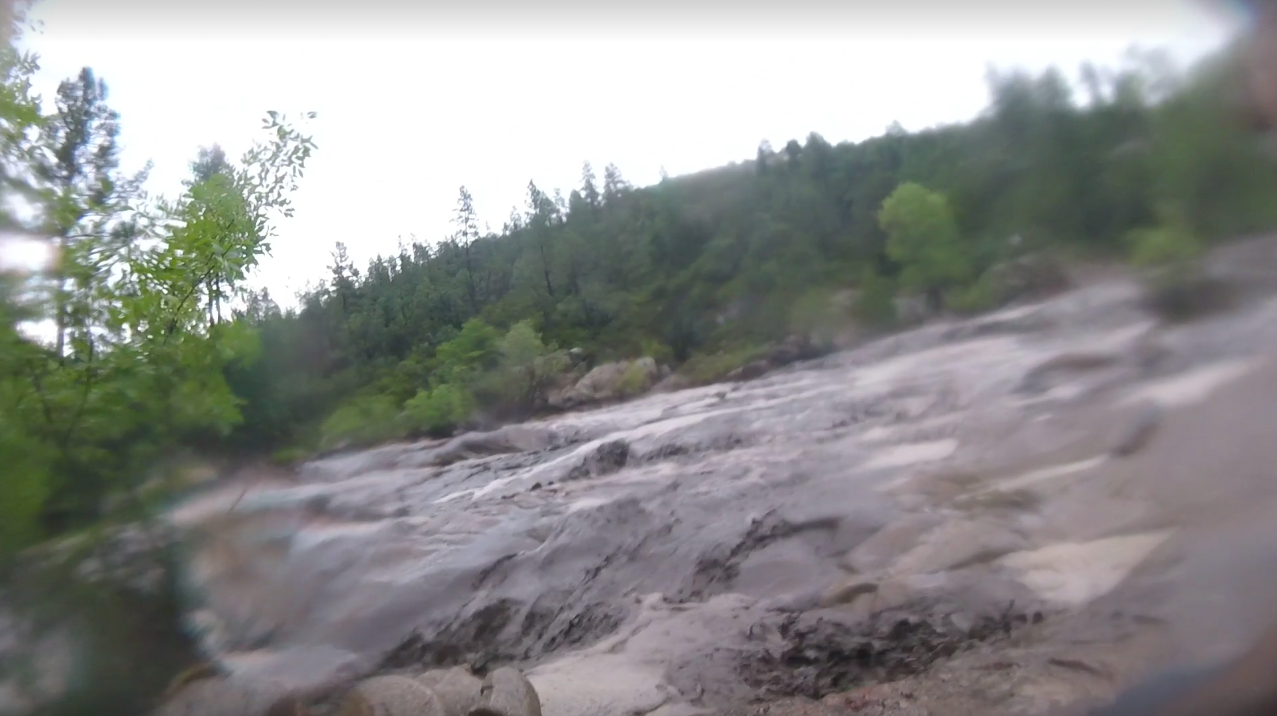 He managed to get to a higher rock in the middle of the flood in what looks to be at least 100 yards downstream before filming a few minutes of dramatic video. His video wasn't made public so I can't share it here, but I did grab a couple of screenshots to give an idea of what things looked like yesterday afternoon.