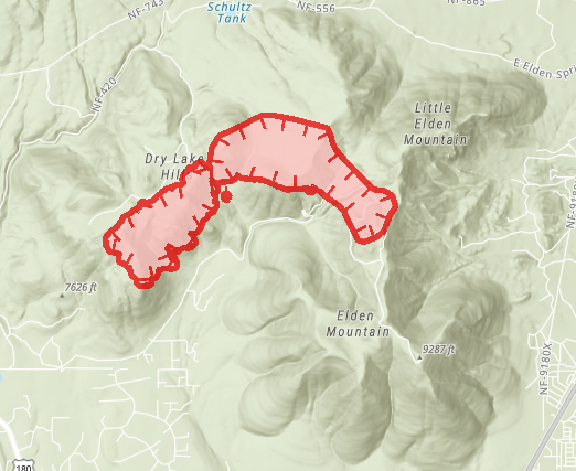 Smoke will be visible from Flagstaff and other local communities. The public should use extreme caution when driving on U.S. Highways 180 and 89 north of Flagstaff as firefighting vehicles, personnel, and equipment will frequently be using those roads as they fight the fire.