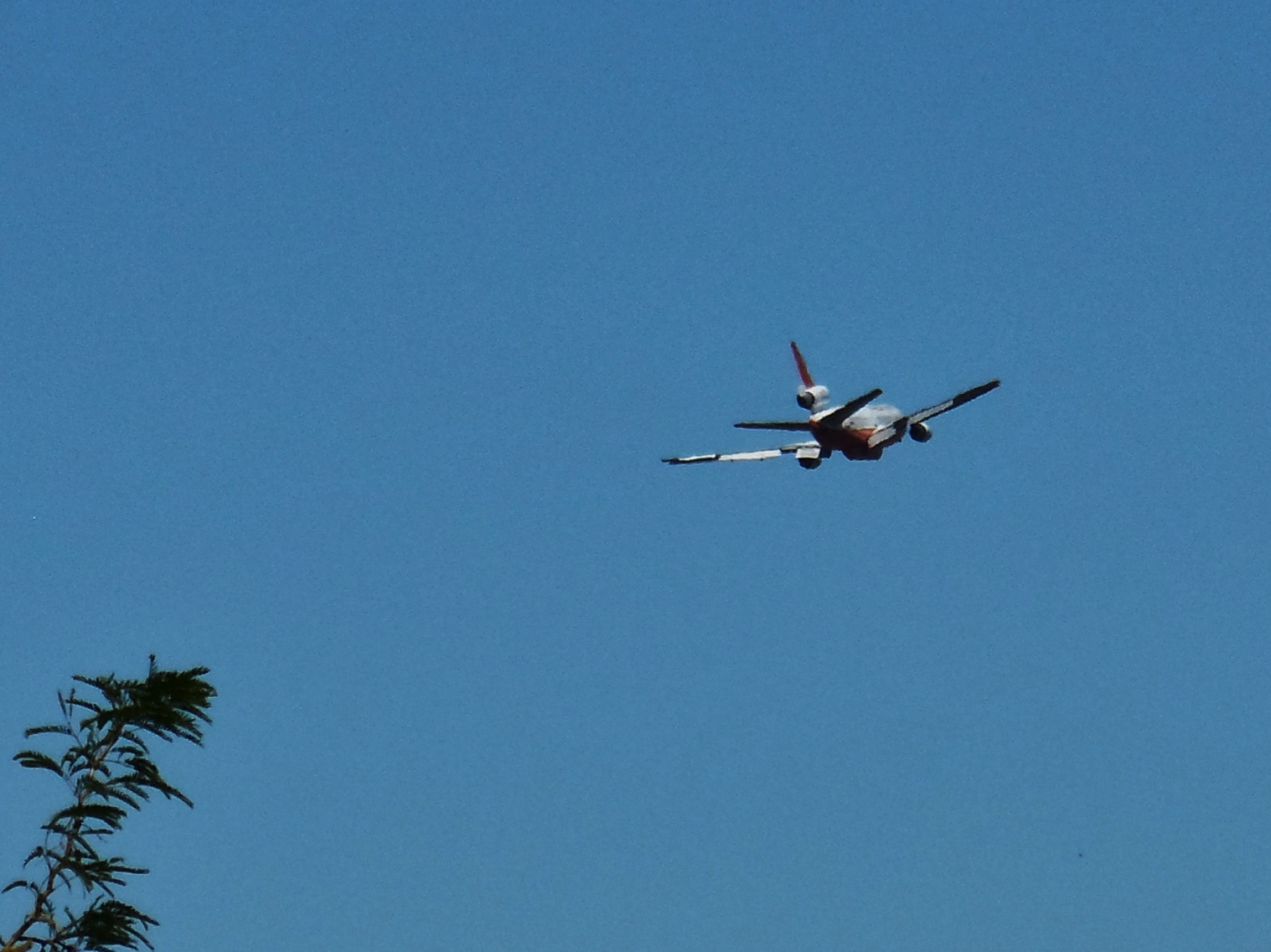 @LosDosSloFolks That’s the plane that flew low over our house a few hours ago. Orange and white, DC 10? Wonder where they go to pick up water?