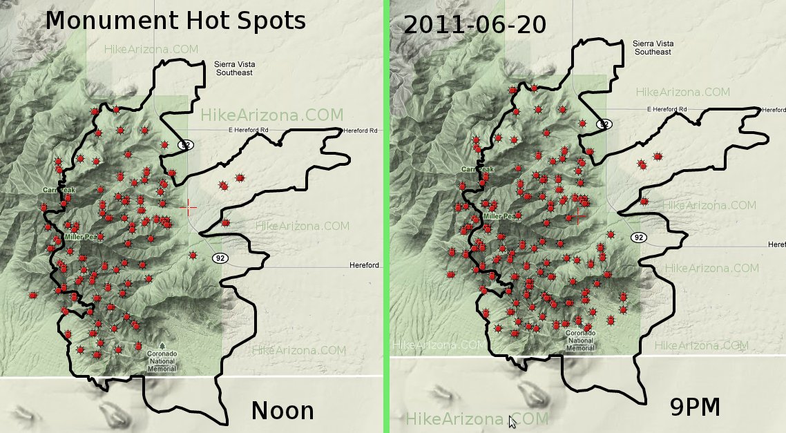 This is the hot spot map at noon http://hikearizona.com/map.php?QX=868