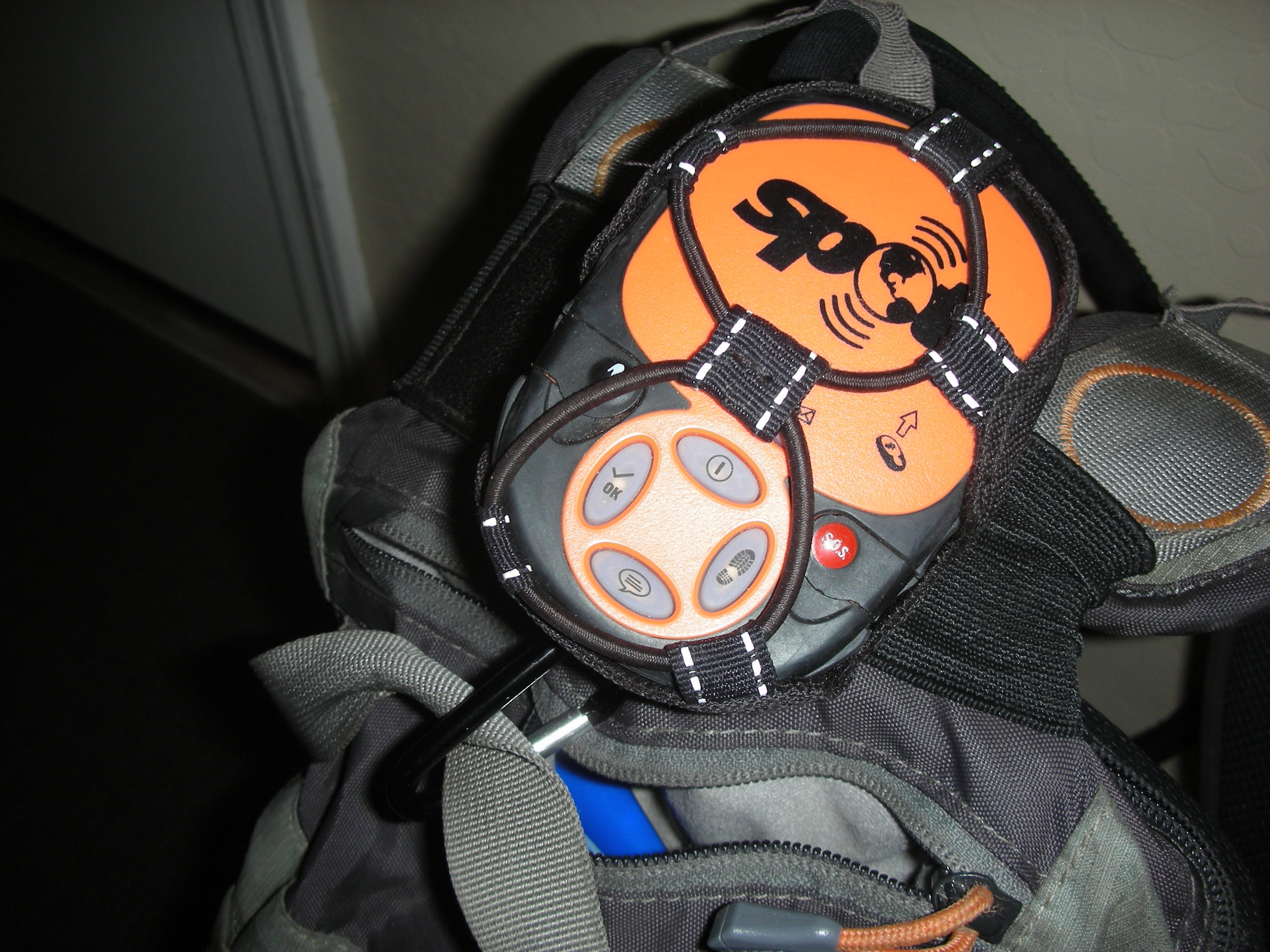 So for the second one, It's mounted on the top of my backpack. This gives it a good view of the sky. I used the elastic velcro strap provided, and wrapped it around the shoulder straps where they meet the top of the pack. Next I used a couple of Carabiners on different locations on the SPOT case, to attach to different straps on my pack. My thinking was if it got ripped off one section of the pack, it would have a second and third point of attachment. It's worked so far.