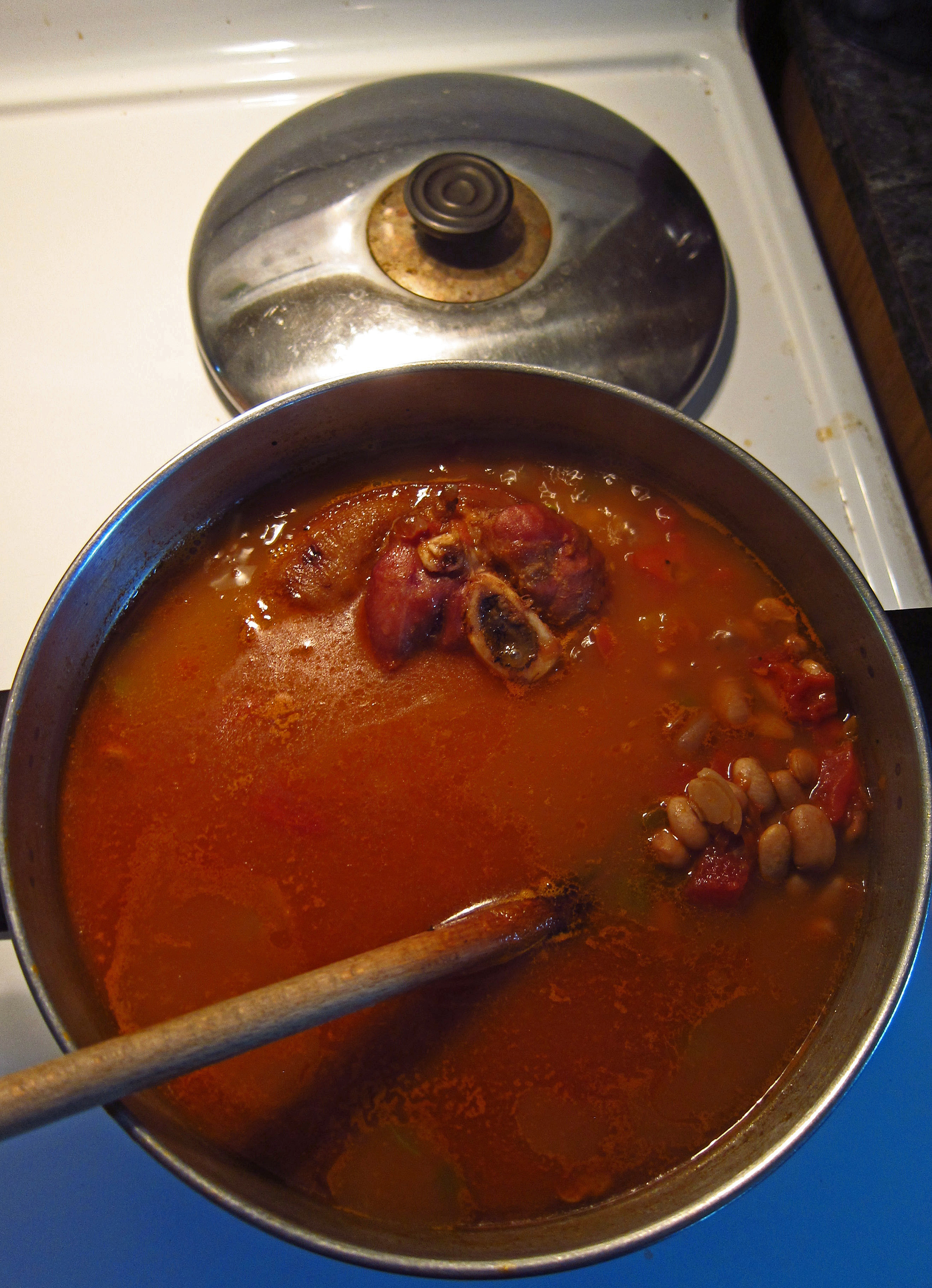 Also, it is important to "add the correct amount of water in the beginning to the boiler pan with lid"..this is something that is learned through experience of trying this recipe a couple of times: Not enough H2O in the beginning cooking stages is not good and needing to add extra H2O later in the cooking stages, makes for less spiced/tasty bean broth.