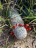 Mammillaria grahamii Common Names Pincushion Cactus, Arizona Fishhook Cactus, Small Fruited Pincushion Habitat Sandy or rocky desert terrain; often found growing in partial shade beneath a larger plant Flowers 1 to 1.5 inches wide, pink, with white edges, light green stigma; sprouting from the body of the cactus between the tubercles. Fruits are long and narrow, to 1.5 inches long, red to red-orange when ripe Description lustering stems 2 to 3 inches wide, up to 8 inches tall. white to greyish radial spines lie flat against the body; sometimes there are several central spines, the longest of which is usually hooked Comments probably the most common pincushion cactus of central Arizona. Many specimens can be seen growing under creosote bushes on Tempe's "A" Mountain. http://www.public.asu.edu/~camartin Mammillaria grahamii (formerly Mammillaria microcarpa) Common pincushion cactus, Graham's nipple cactus |