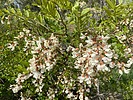 Robinia neomexicana Flowers: pink on drooping racemes Description: Small, thorny tree 8'-15' tall Native to the Southwestern United States (southeastern California and southwestern Utah, Virgin River region, east through Arizona and New Mexico, the Rio Grande valley, to far west Texas) and adjoining northern Mexico; from central New Mexico the range extends north into Colorado, mostly the eastern foothills of the Rocky Mountains. In Arizona, it ranges across the Arizona transition zone, the Mogollon Rim and White Mountains, and into western and southwestern New Mexico. In California, it is uncommon below 1500 m (5000 ft) in canyons in the Mojave Desert and its sky island pinyon-juniper habitats (Pinus monophylla and Juniperus californica). Farther east, it is typically found between 1200 and 2600 meters (4000 and 8500 feet) along streams, in the bottoms of valleys, and on the sides of canyons. Grows to 5–10 m tall (rarely to 15 m) with bristly shoots. The leaves are 10–15 cm long, pinnate with 7–15 leaflets; they have a pair of sharp, reddish-brown thorns at the base. The flowers are showy and white or pink, produced in spring or early summer in dense racemes 5–10 cm long that hang from the branches near the ends. The fruits are brown bean-like pods with bristles like those on the shoots. Uses In New Mexico, Pueblo Native Americans traditionally ate the flowers uncooked. Mule deer, cattle, and goats browse the plant foliage. Squirrels and quail eat the locust's seeds. Source: Wikipedia |