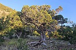 occurs in pinyon-juniper, pine-oak, juniper-oak, Madrean evergreen, and riparian woodlands, and in a ponderosa pine forest. It rarely grows in dense stands. Typically, it occurs in small groves or as individuals interspersed with other junipers, ponderosa pine, oaks, or various understory species. It is a common component of pinyon-juniper woodlands with pinyon and/or singleleaf pinyon. Source US Forest Service FEIS. Flowers Tiny yellowish male cones. Description The largest juniper in AZ. A small to a medium-sized tree reaching 10-15 m (rarely to 25 m.) The bark is very distinctive - hard, dark gray-brown, cracked into small square plates superficially resembling Alligator skin. Comments Source: Wikipedia. |
