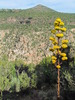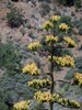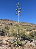Habitat: an icon of the Sonoran desert. Flowers: Each rosette is monocarpic and grows slowly to flower only once. During flowering a tall stem or "mast" grows from the center of the leaf rosette and bears a large number of "cups" dense, short (3" - 4") tubular flowers. Description: Succulent, Subshrub, Shrub, Herb, Perennial. A large rosette of thick fleshy leaves generally ending in a sharp point and with a spiny margin to 3' tall; the stout stem is usually short, the leaves apparently springing from the root. After development of fruit the original plant dies, but suckers are frequently produced from the base of the stem which become new plants. Comments: Agaves are succulent plants of a large botanical genus of the same name, belonging to the family Agavaceae. Source Wikipedia. |