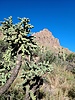 Jumping cholla, Cylindropuntia fulgida Flowers white and pink, streaked with lavender. 1" wide, displayed at old joint tips (or fruit tips). Description Native. an arborescent (tree like) plant with one branching trunk. can grow to 12' tall. create fantastic looking forests. long, drooping chains of fruits. Comments While the name "Jumping Cholla" is applied especially to this species, it is also used as a general term for all chollas. A good method to remove the cactus is with a hair comb, don't try grabbing with your hand. See the forums for more advice on removing barbs. |