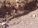 Crotalus atrox Common Names aka buzztail, buzzworm. Crotalus atrox Habitat desert foothills, rocky outcrops, shrubland, dry sandy washes Description generally colored a shade of dark or light brown. Its pattern is a distinctive row of large, dark diamond shapes edged in yellow trim, running down the length of its body. The diamonds fade to dark rings around the tail, where the distinctive rattle begins. A dark stripe edged in yellow runs back from the mouth to the eyes on each side of the head. There is no significant difference in appearance between males and females except that males are generally larger. They grow to an average length of 4½ feet, but can reach a maximum length 6½ feet. Source Wikipedia Comments Most common encountered snake in the AZ desert terrain. |