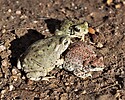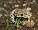 Native to the southwestern United States and northwestern Mexico, especially Baja California. It occurs primarily along rocky streams and riverbeds, often in arid or semi-arid regions. It is very localized on the coastal slope, but widespread in the deserts. In dry areas it needs seasonal pools or even temporary rain puddles to use for breeding. Eggs hatch in three days and the tadpole can transform in 6–8 weeks, taking advantage of the ephemeral water bodies. It spends dry periods in burrows or beneath rocks or moist plant matter, and becomes suddenly active during rainfall when multitudes of individuals emerge. Source Wikipedia |