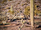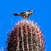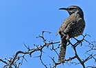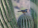 Habitat:Desert Thickets and Cacti. Full-time Resident of the Desert Southwest, Mexico, and California. Description:Starling sized, with spotted breast and belly. White spots on outer tail feathers, white eyebrow and rusty crown. Comments: AZ State Bird. Largest North American Wren. Loud voice, song is harsh & unmusical. Edit: 08/01/12 Source: Audubon Online Guides |