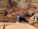 Corvus corax Common Names: known to backpackers as "expletive censored". Habitat: Description: Large, black, big beak. Comments: Apart from its greater size, the Raven differs from its cousins the crows by having a larger and heavier beak, and a deeper and more varied barking prrrukk call note. Other field points are the shaggy throat feathers and a longer, wedge-shaped tail. Traditionally associated with death and darkness in the Old World, the opposite is true in the west, where they figure prominently in creation myths. Both the Hopi and Navajo respect the raven (Gaagii)and crow, and Hopi tradition tells that Angwusnasomtaqa (Crow Mother) is the Mother of all Katsinas. Source I would attribute if I could remember where I found this info. |